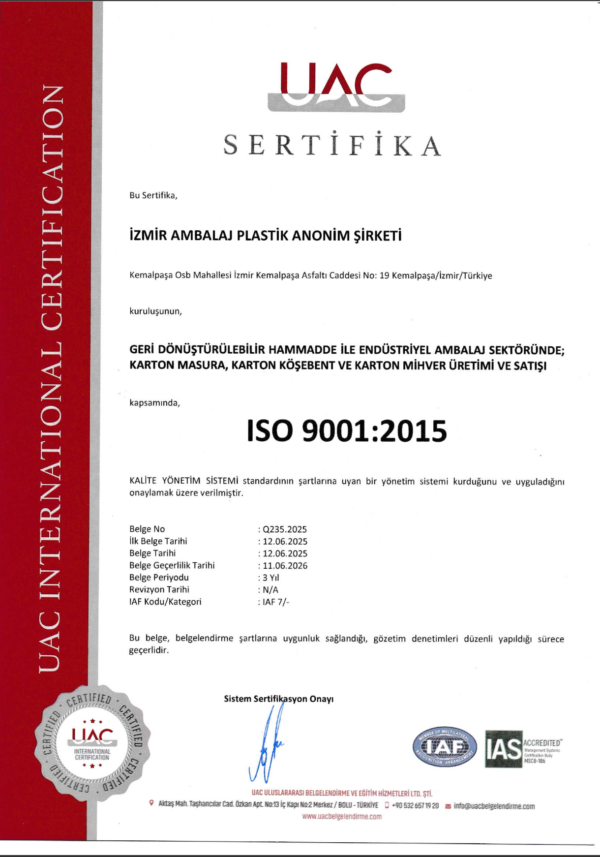 Sertifikalarımız